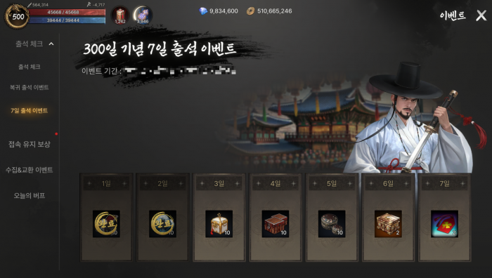 인기 모바일 MMORPG 조선협객전2M이 서비스 300일을 맞아 특별한 7일 출석..